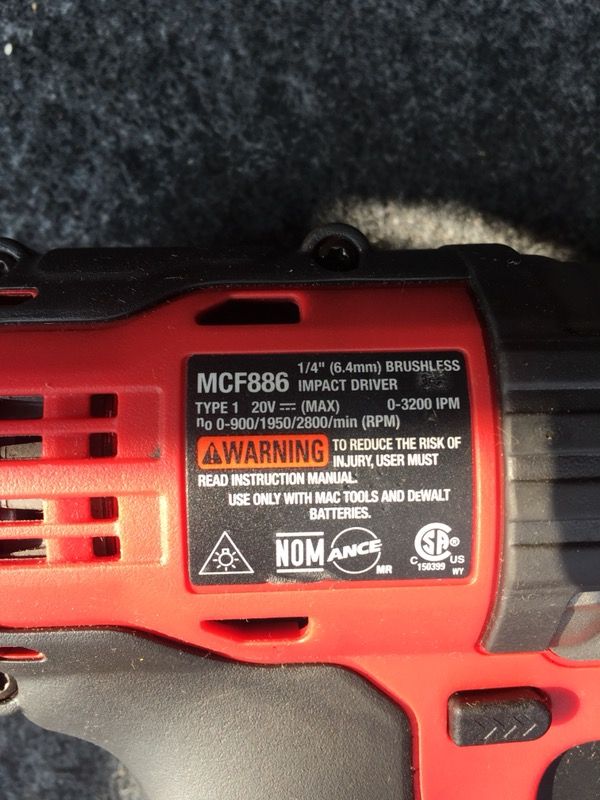 Mac Tools Mcf886 20v Max 1 4 Brushless Impact Driver For Sale